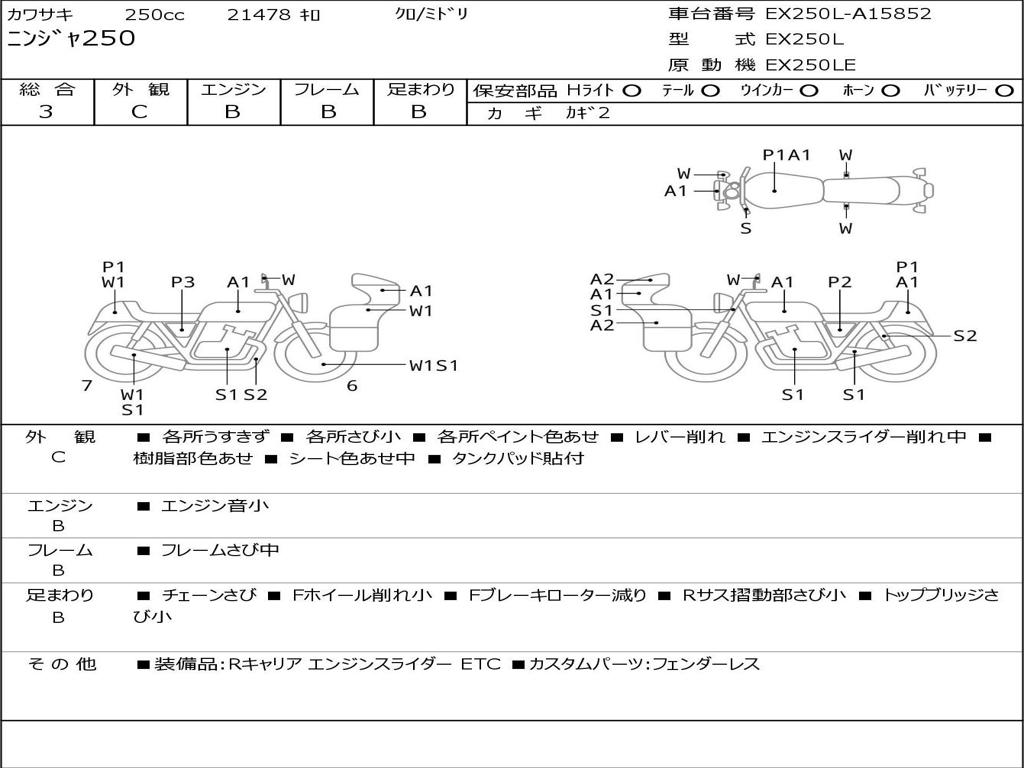 | Номер рамы / VIN | EX250L-A15852 |