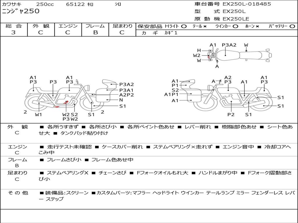 | Номер рамы / VIN | EX250L-018485 |