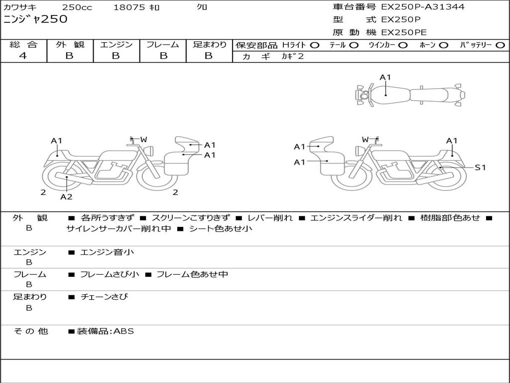 | Номер рамы / VIN | EX250P-A31344 |