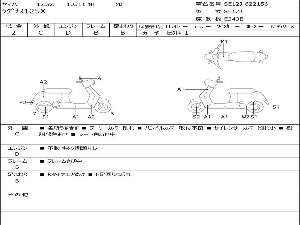 | Номер рамы / VIN | SE12J-622156 |