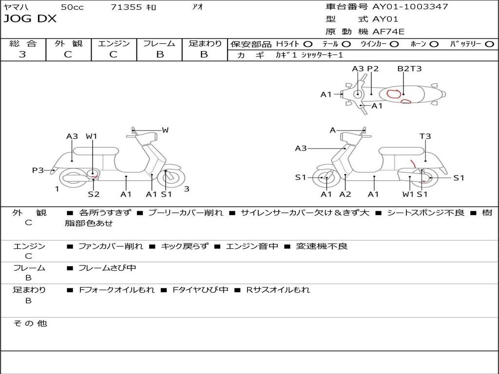 | Номер рамы / VIN | AY01-1003347 |
