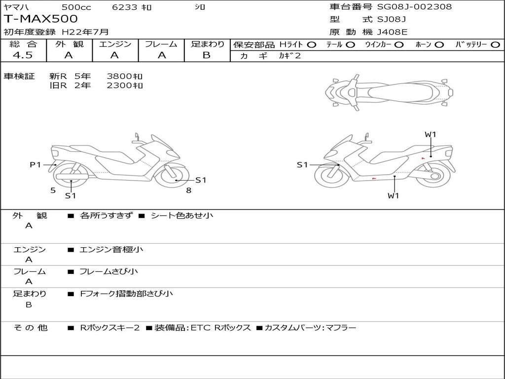 | Номер рамы / VIN | SJ08J-002308 |