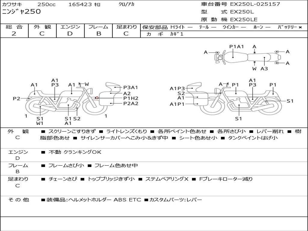 | Номер рамы / VIN | EX250L-025157 |