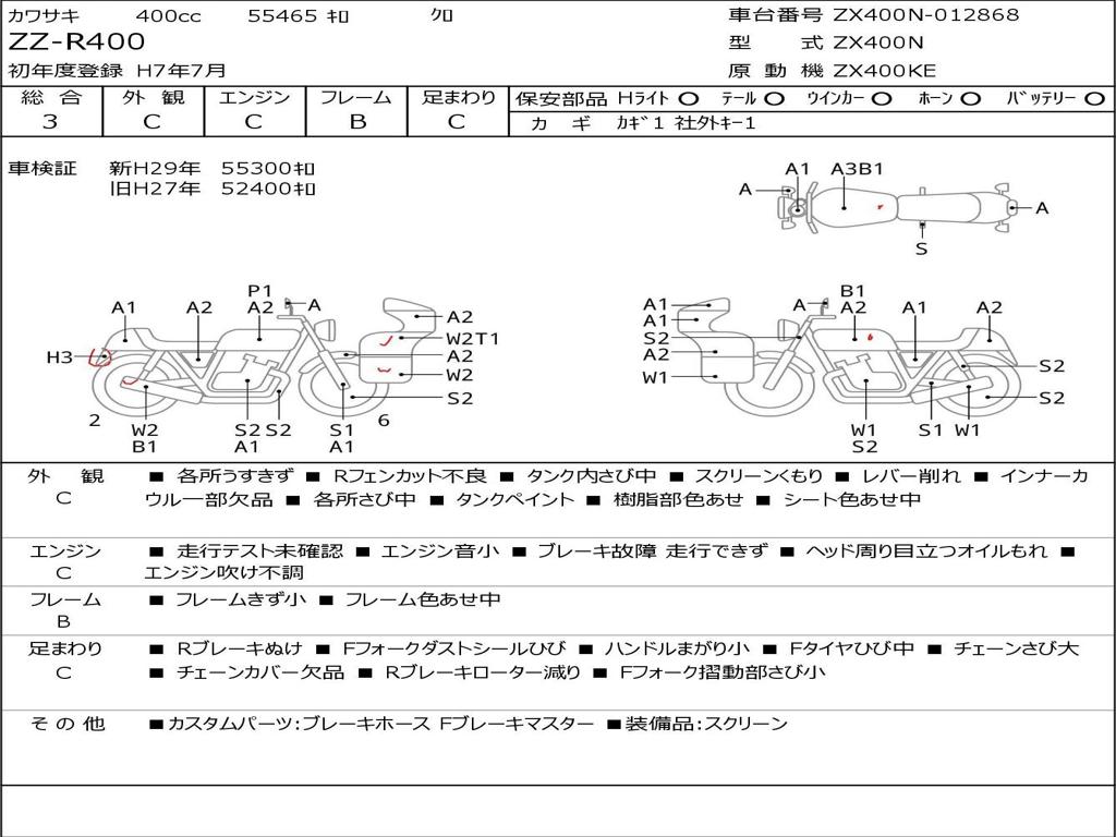 | Номер рамы / VIN | ZX400N-012868 |