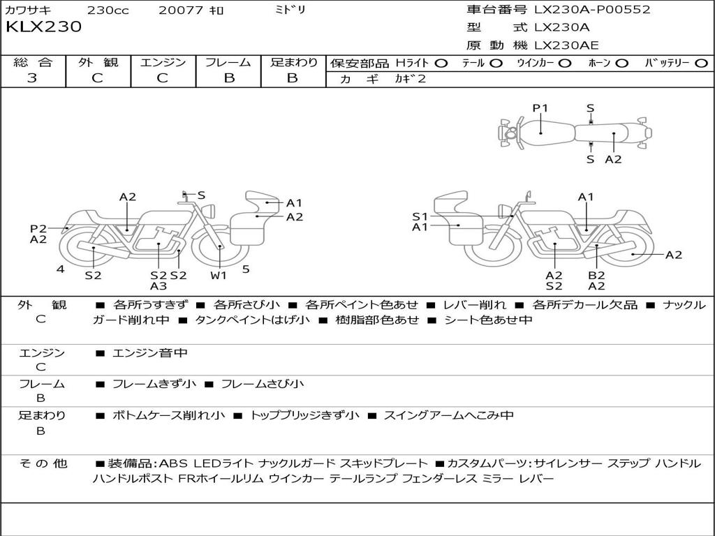 | Номер рамы / VIN | LX230A-P00552 |