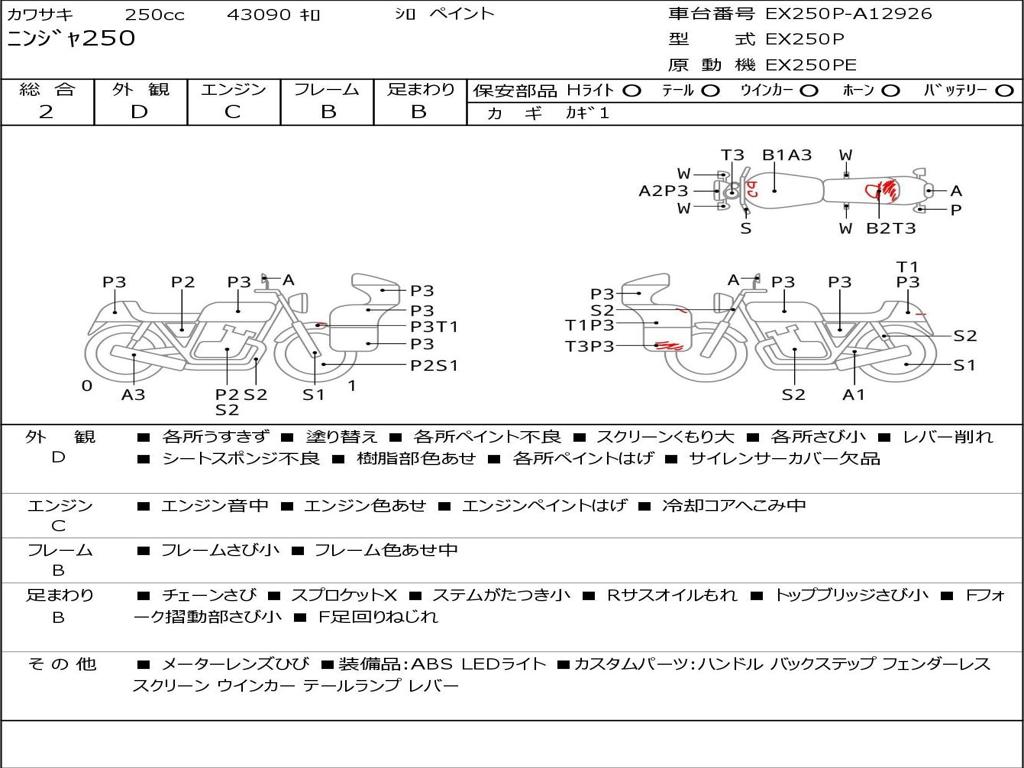 | Номер рамы / VIN | EX250P-A12926 |