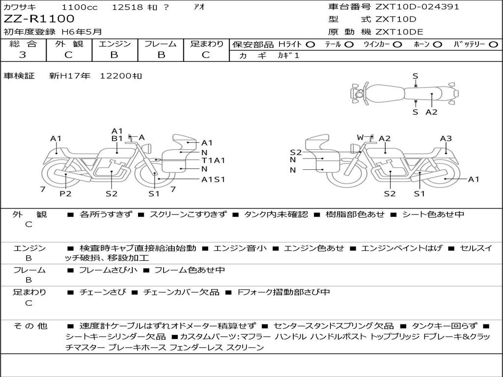 | Номер рамы / VIN | ZXT10D-024391 |