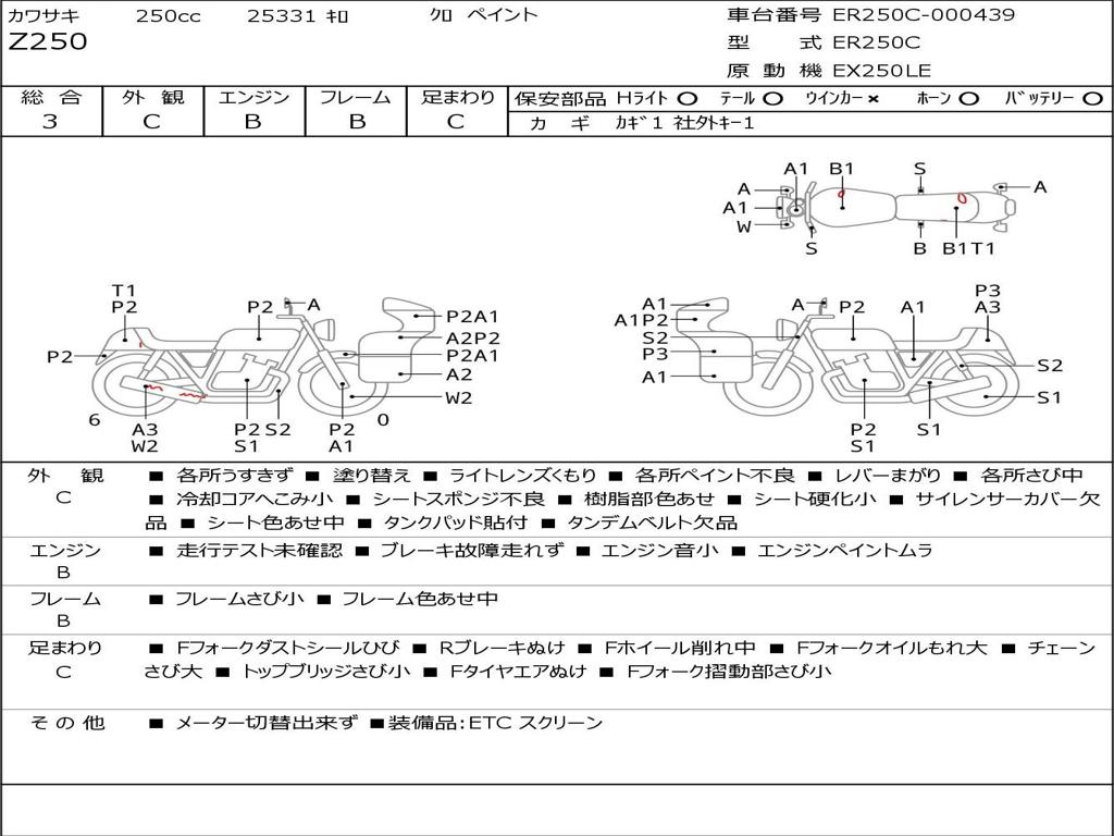 | Номер рамы / VIN | ER250C-000439 |