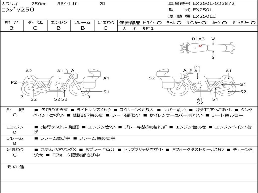| Номер рамы / VIN | EX250L-023872 |