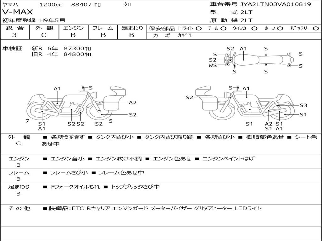 | Номер рамы / VIN | JYA2LTN03VA010819 |