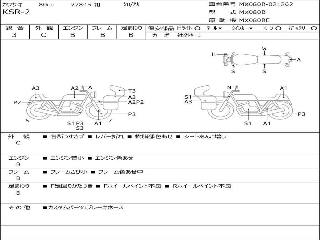 | Номер рамы / VIN | MX080B-021262 |