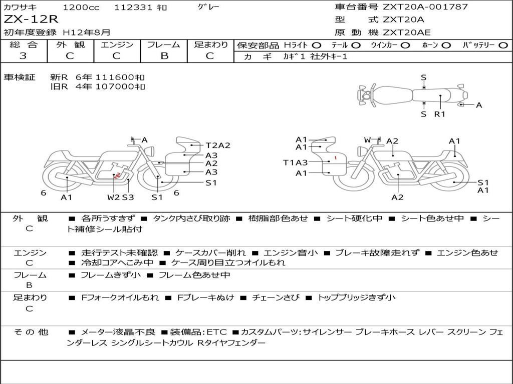 | Номер рамы / VIN | ZXT20A-001787 |