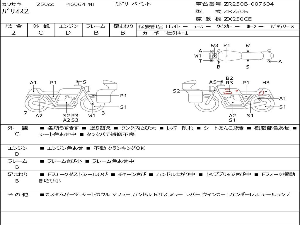 | Номер рамы / VIN | ZR250B-007604 |