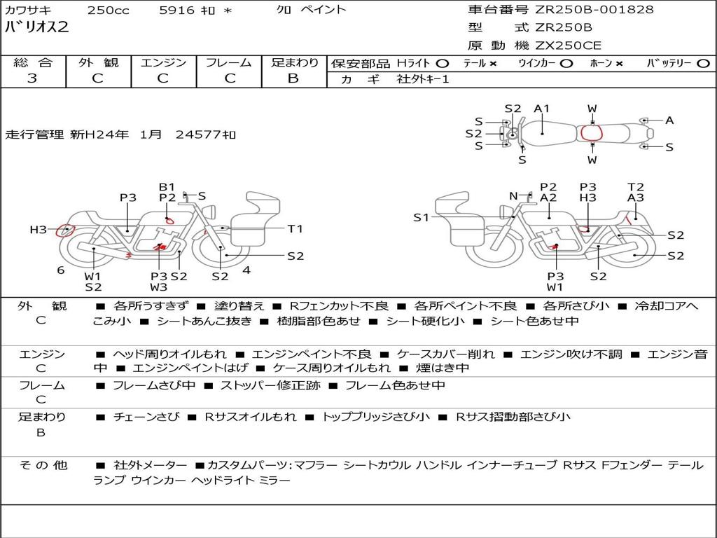 | Номер рамы / VIN | ZR250B-001828 |
