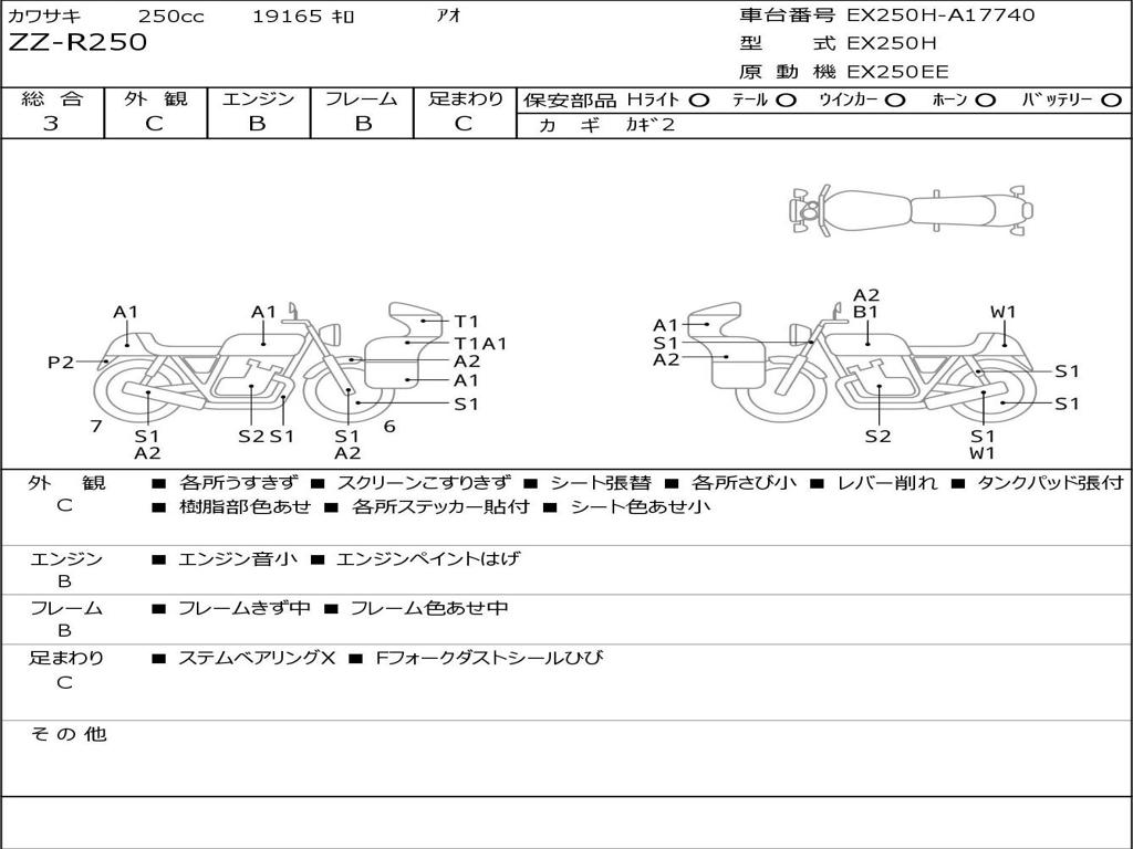 | Номер рамы / VIN | EX250H-A17740 |