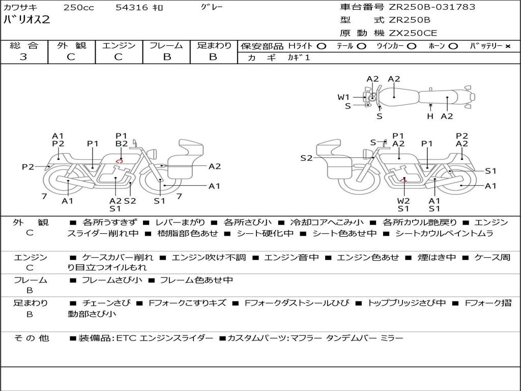 | Номер рамы / VIN | ZR250B-031783 |