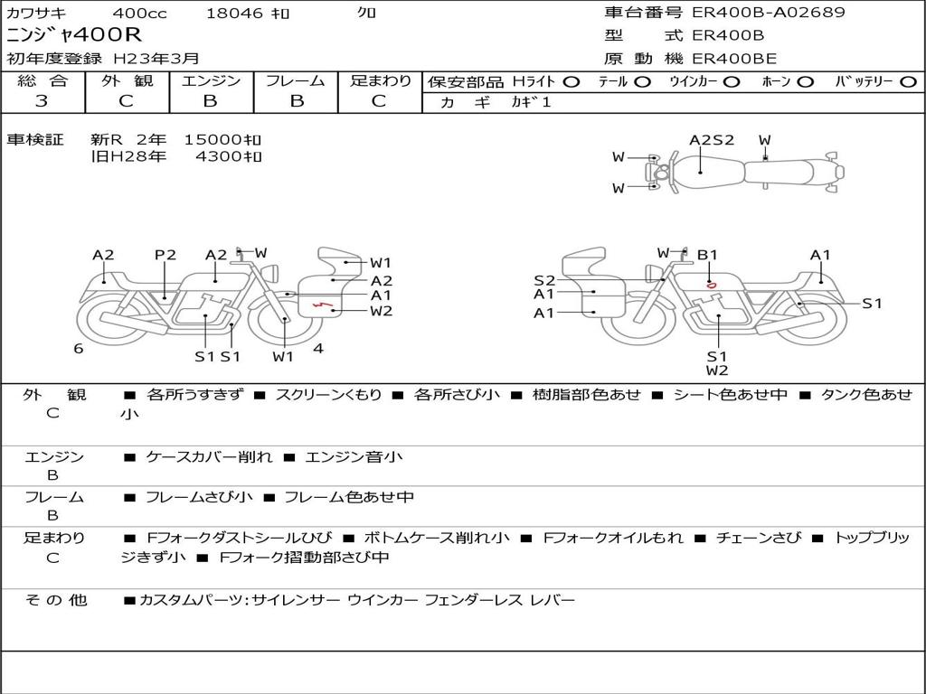 | Номер рамы / VIN | ER400B-A02689 |