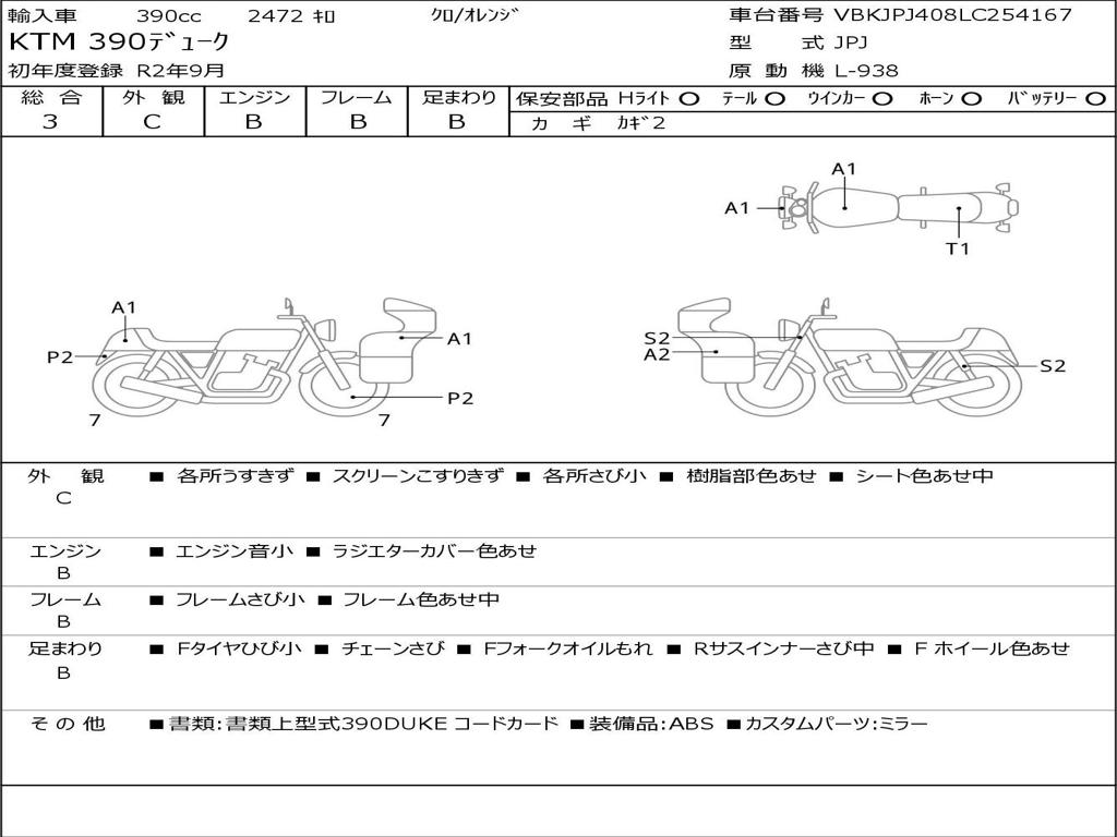 | Номер рамы / VIN | VBKJPJ408LC254167 |