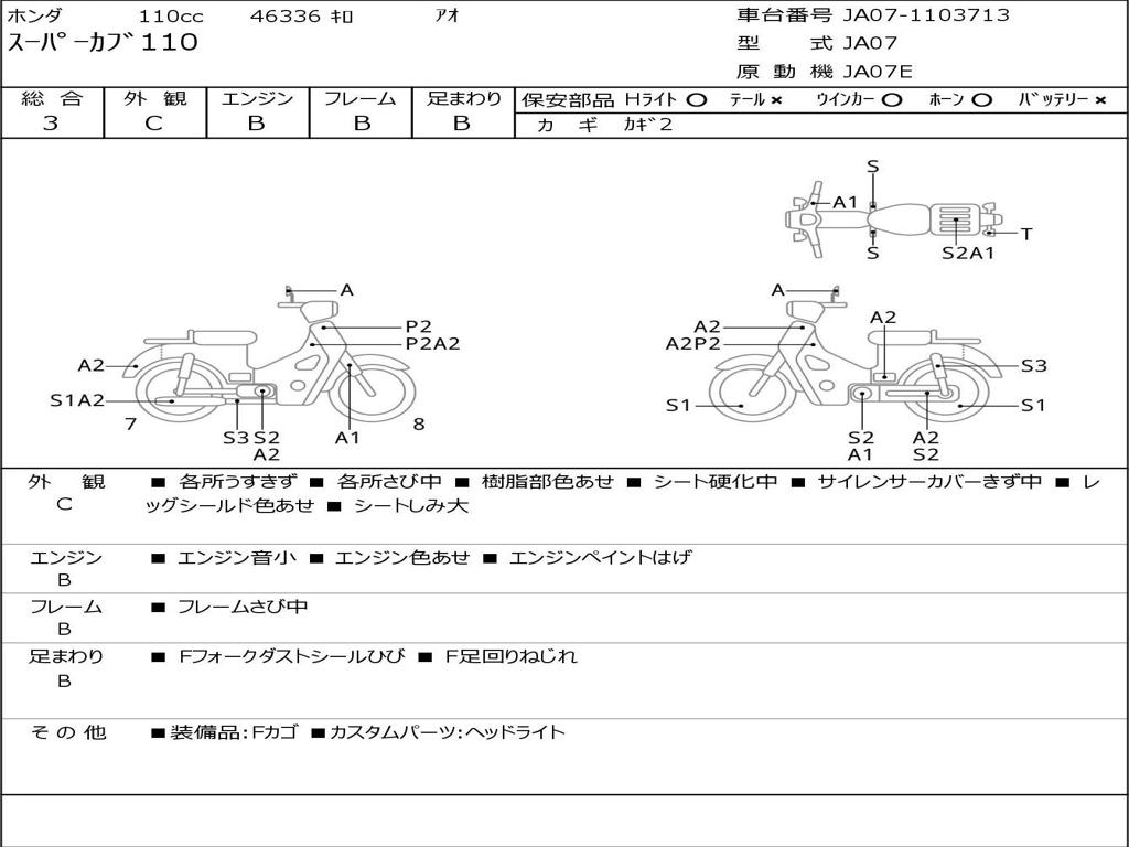| Номер рамы / VIN | JA07-1103713 |