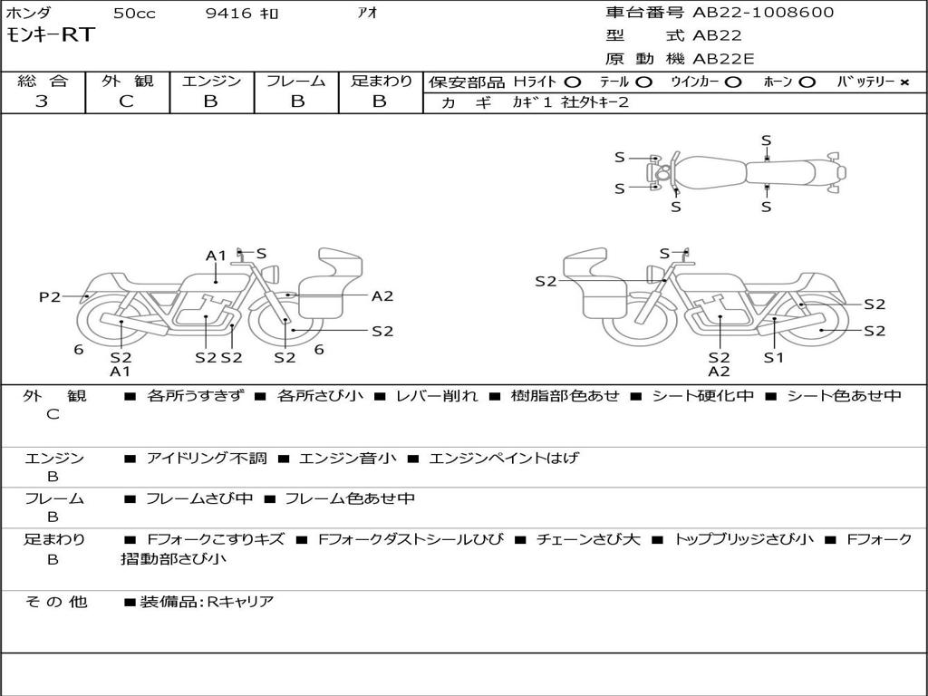 | Номер рамы / VIN | AB22-1008600 |