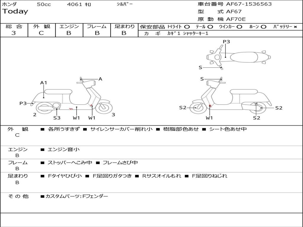 | Номер рамы / VIN | AF67-1536563 |
