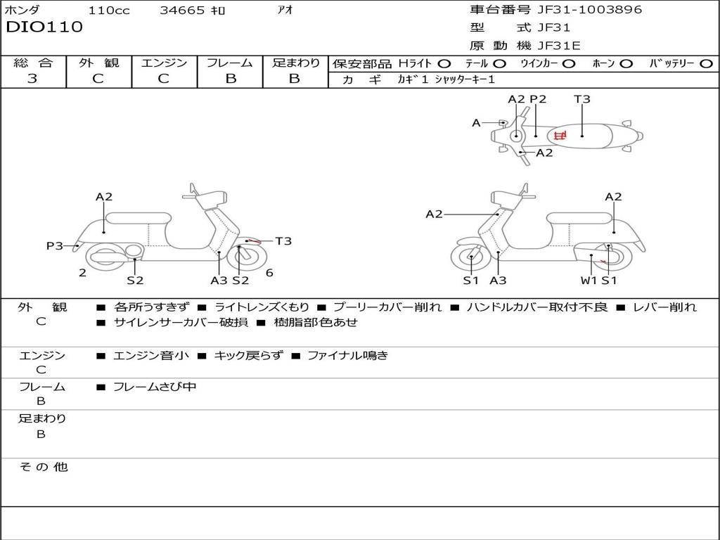 | Номер рамы / VIN | JF31-1003896 |