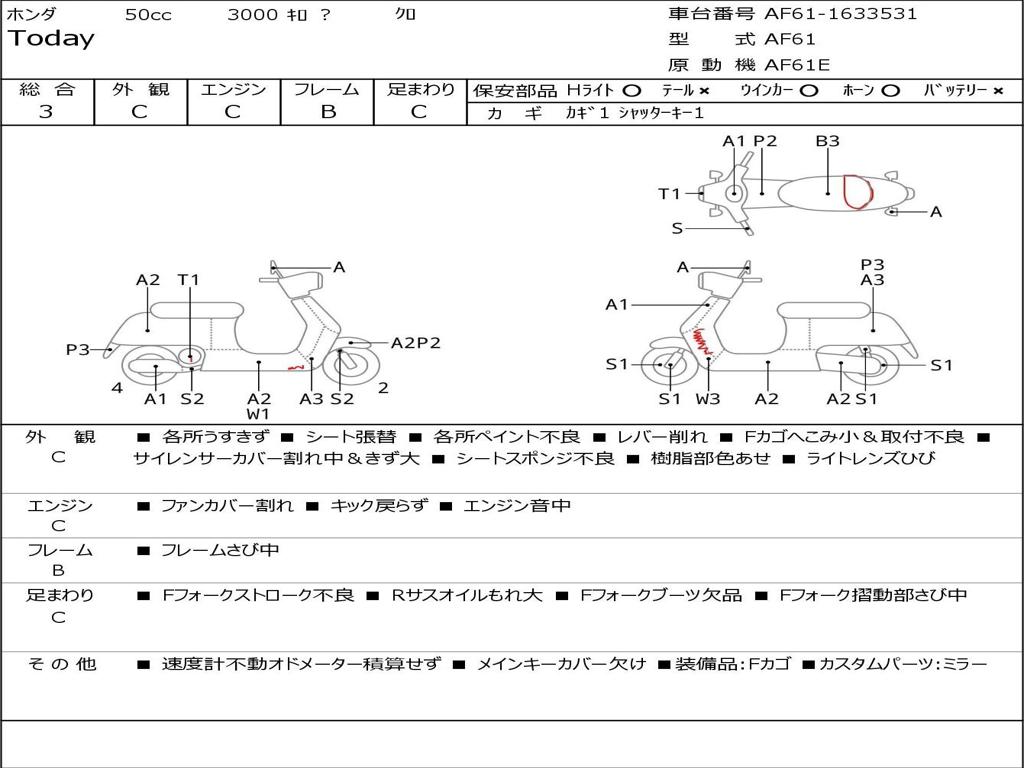 | Номер рамы / VIN | AF61-1633531 |
