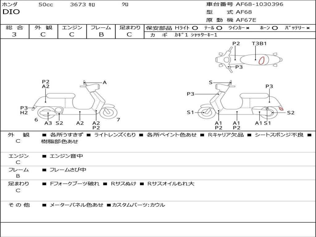 | Номер рамы / VIN | AF68-1030396 |