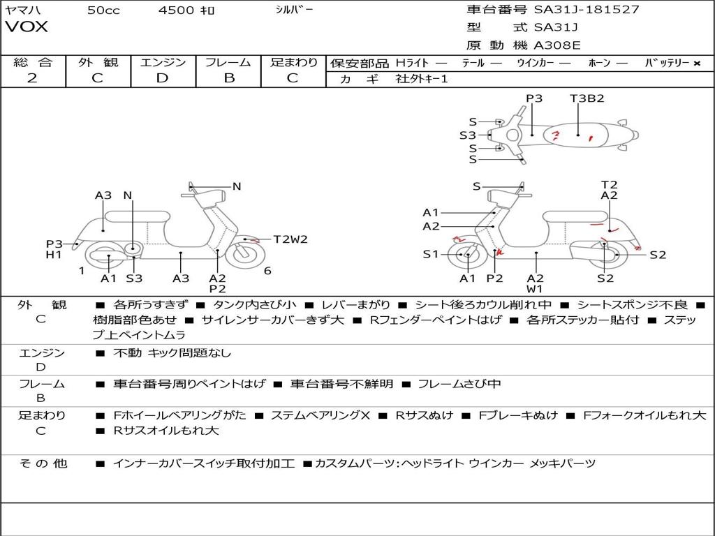 | Номер рамы / VIN | SA31J-181527 |