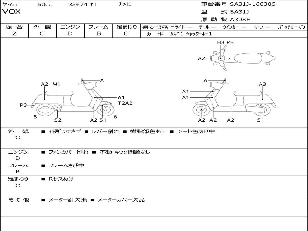 | Номер рамы / VIN | SA31J-166385 |