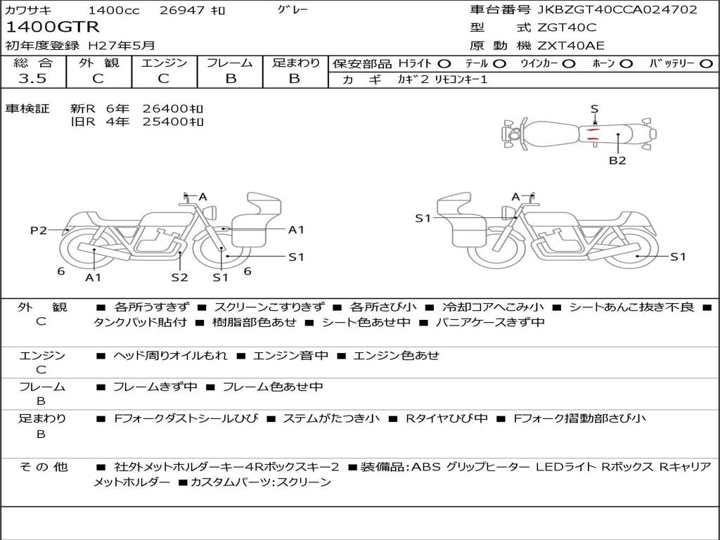 | Номер рамы / VIN | JKBZGT40CCA024702 |