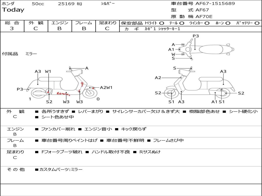 | Номер рамы / VIN | AF67-1515689 |
