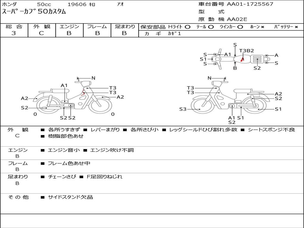 | Номер рамы / VIN | AA01-1725567 |