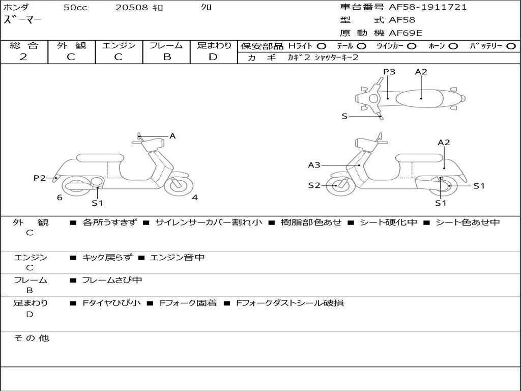 | Номер рамы / VIN | AF58-1911721 |