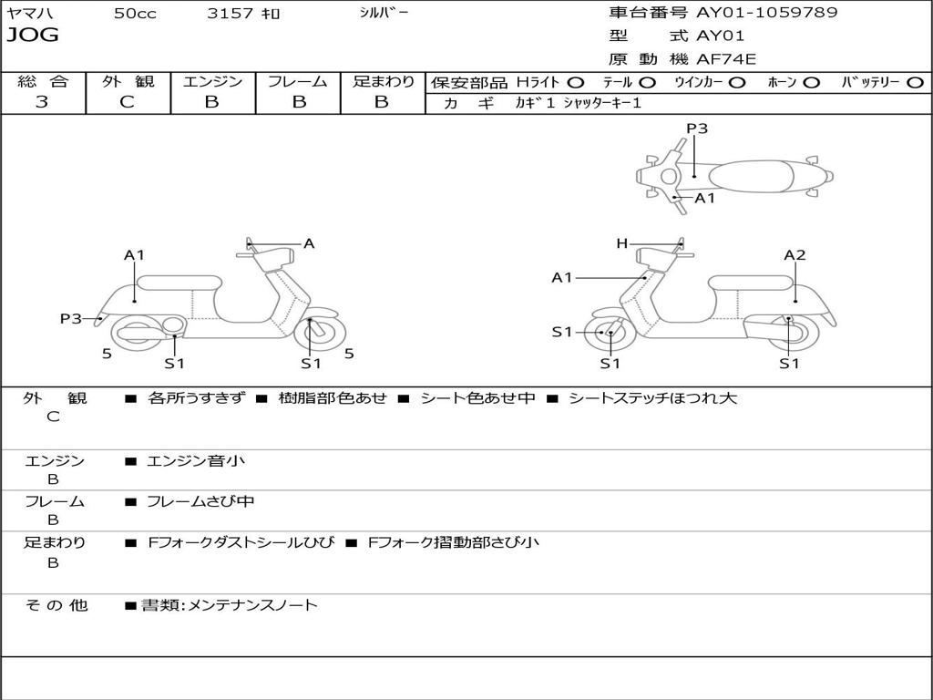 | Номер рамы / VIN | AY01-1059789 |