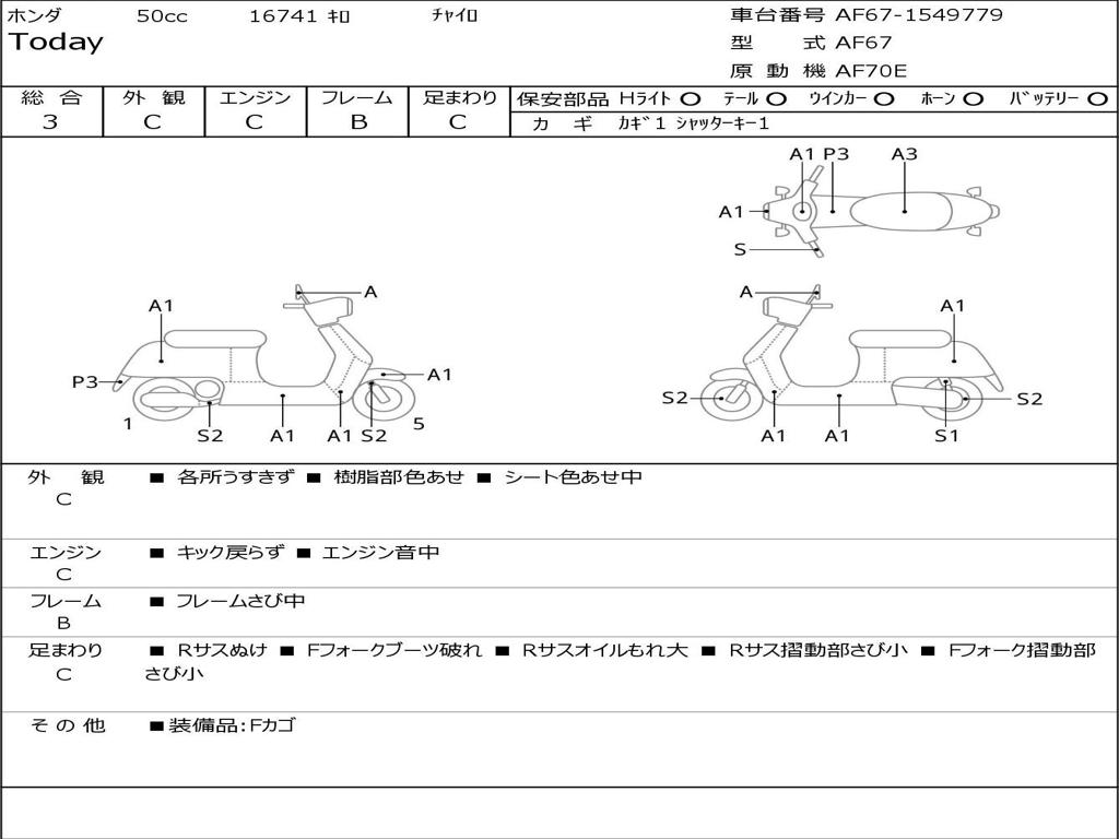 | Номер рамы / VIN | AF67-1549779 |