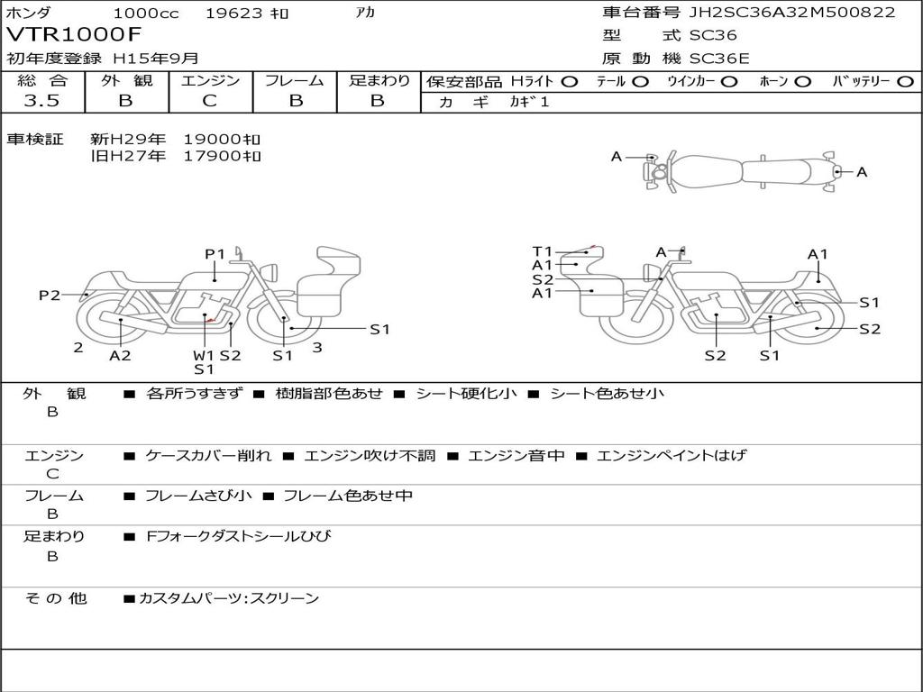 | Номер рамы / VIN | JH2SC36A32M500822 |