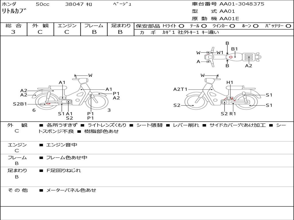 | Номер рамы / VIN | AA01-3048375 |