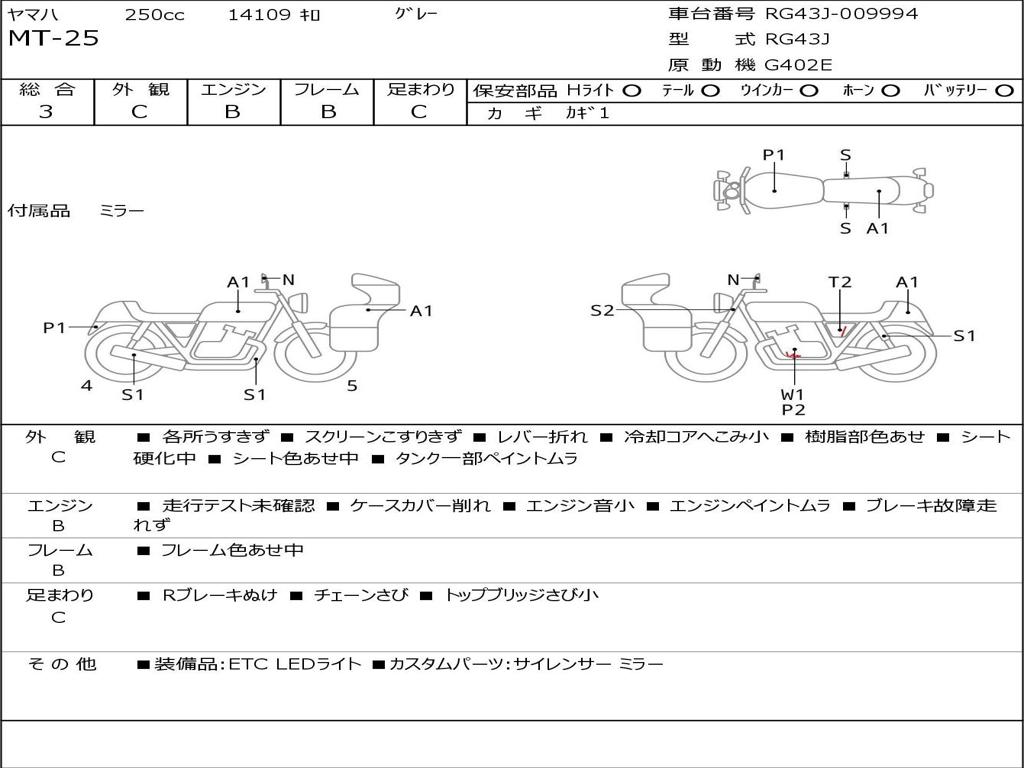 | Номер рамы / VIN | RG43J-009994 |