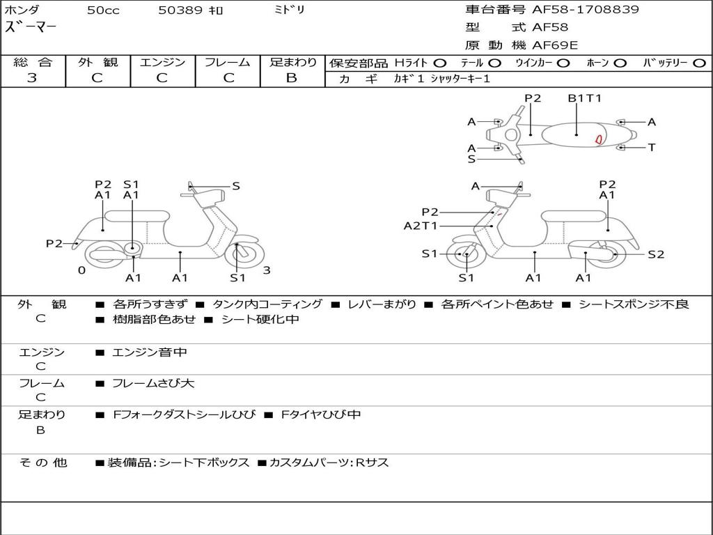 | Номер рамы / VIN | AF58-1708839 |