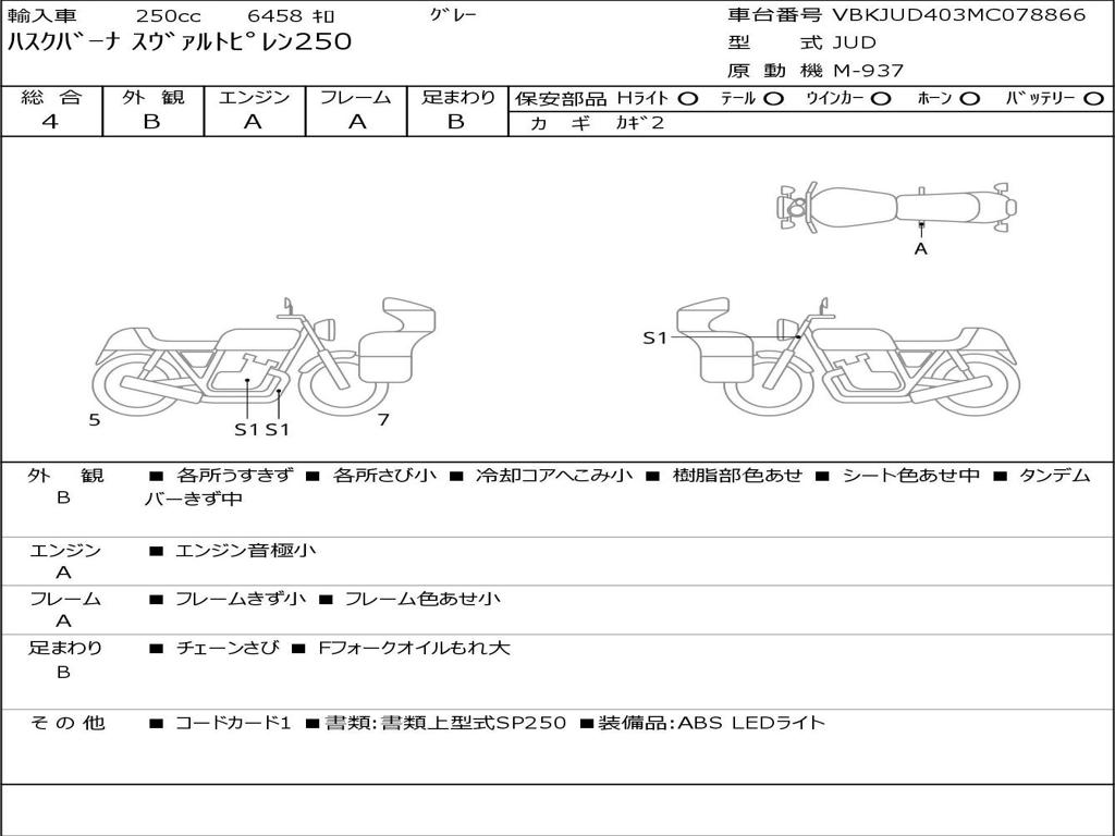 | Номер рамы / VIN | VBKJUD403MC078866 |