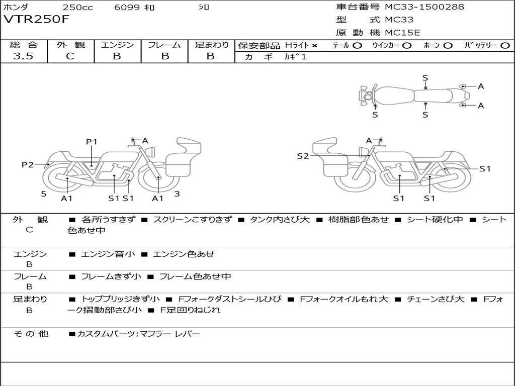 | Номер рамы / VIN | MC33-1500288 |