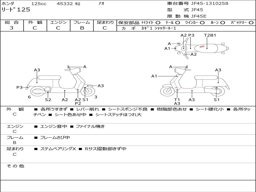 | Номер рамы / VIN | JF45-1310258 |
