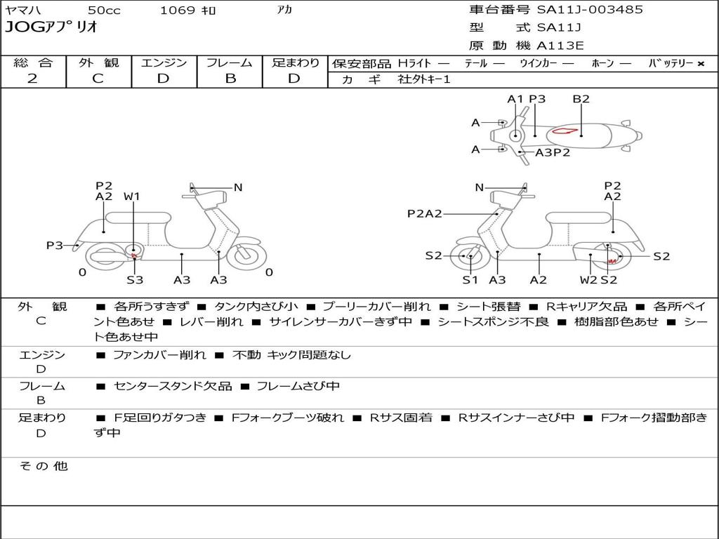 | Номер рамы / VIN | SA11J-003485 |