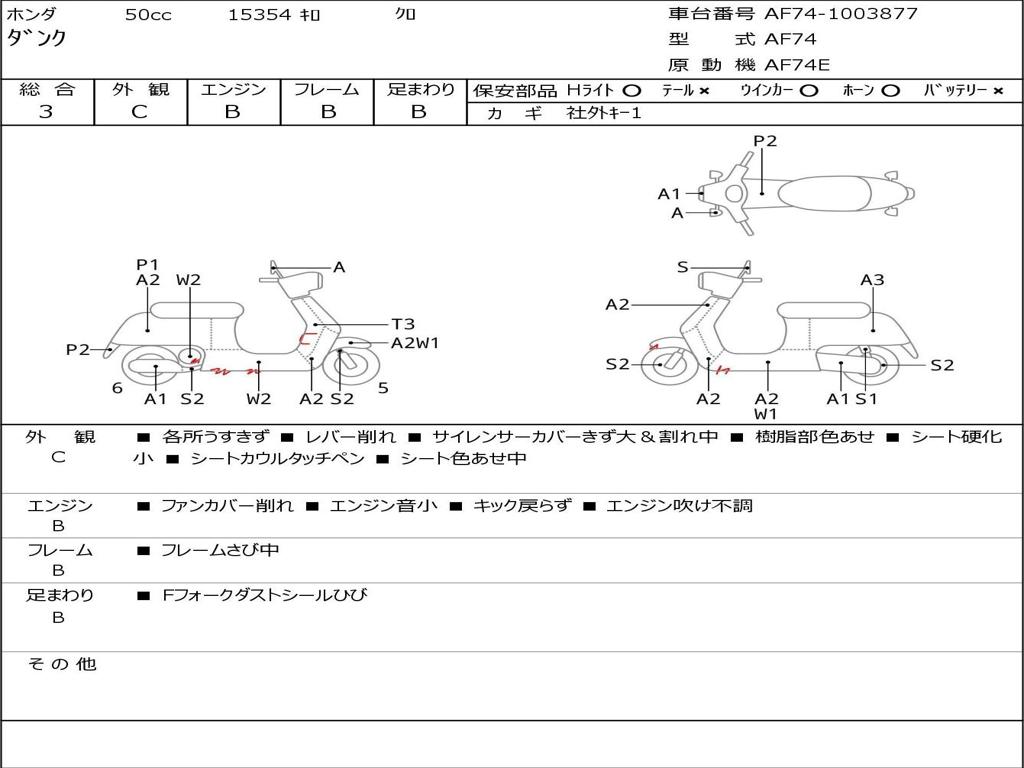 | Номер рамы / VIN | AF74-1003877 |