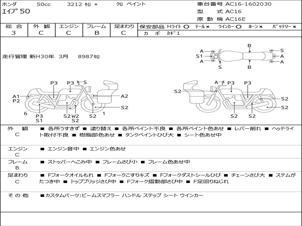 | Номер рамы / VIN | AC16-1602030 |