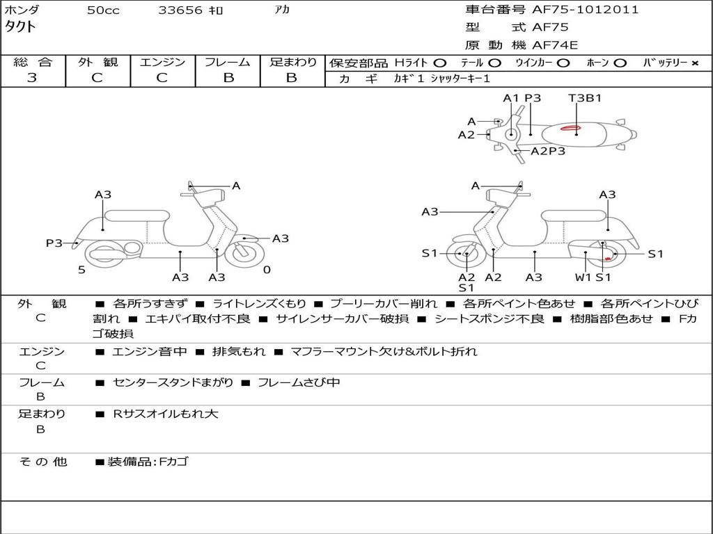 | Номер рамы / VIN | AF75-1012011 |