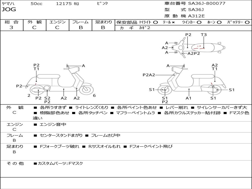 | Номер рамы / VIN | SA36J-800077 |