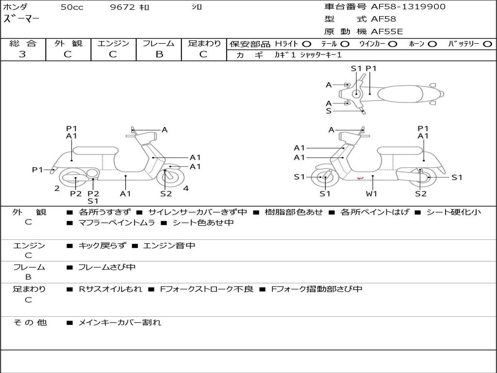 | Номер рамы / VIN | AF58-1319900 |