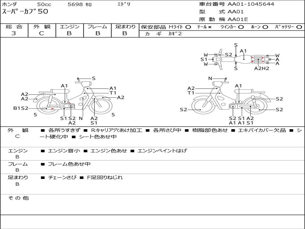 | Номер рамы / VIN | AA01-1045644 |